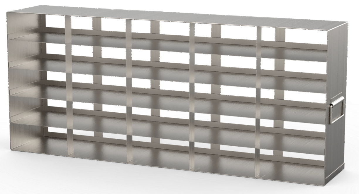 One-piece stamped and spliced—won’t split under load; open internal structure keeps samples at a uniform temperature. Designed primarily for ultra-low-temperature freezers.